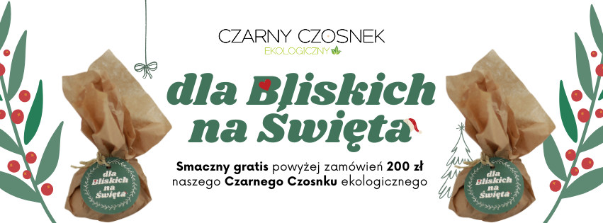 § 2 Czas trwania Promocji 1. Promocja „dla Bliskich na Święta’’ obowiązuje od dnia 14 grudnia 2025 roku do dnia 31 grudnia 2025 roku albo do wyczerpania zapasów (oferta limitowana). W ofercie dostępny jest 1 gratis w postaci opakowania 3 lub 4 główek ekologicznego czarnego czosnku. 2. Organizator może przedłużyć czas trwania Promocji, poprzez udostępnienie informacji w tym zakresie na stronie internetowej www.bieszczadzkiczosnek.pl na profilu Bieszczadzki Czosnek w portalu społecznościowym Facebook lub Instagram.